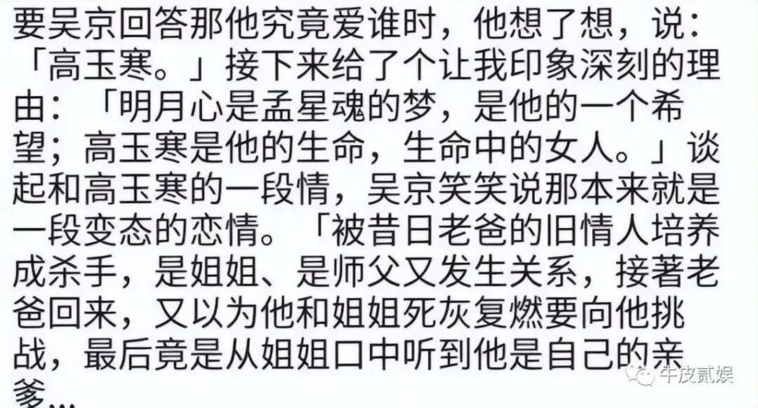 就连饰演男主的吴京都亲口说,剧中男主深爱着的是高玉寒。