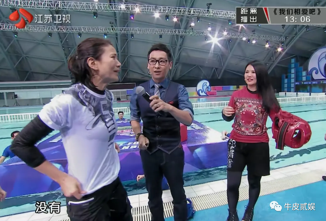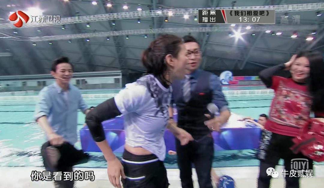 结果在比赛开始后,杨云没有任何犹豫直接冲向了袁咏仪,一把就帮她推进了水里。