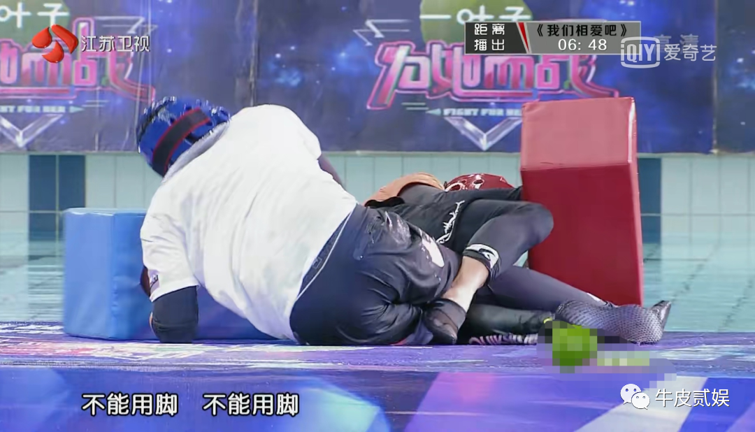 节目中有一个名叫“黑暗擂台”的游3戏,双方在浮板上拿着泡沫锤攻击对手,直到一方落水就算胜利。