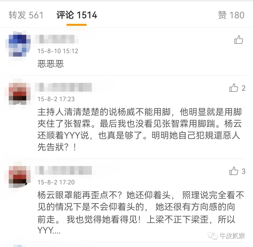 等到杨威上场跟张智霖对决时,更是让网友们气昏了头。