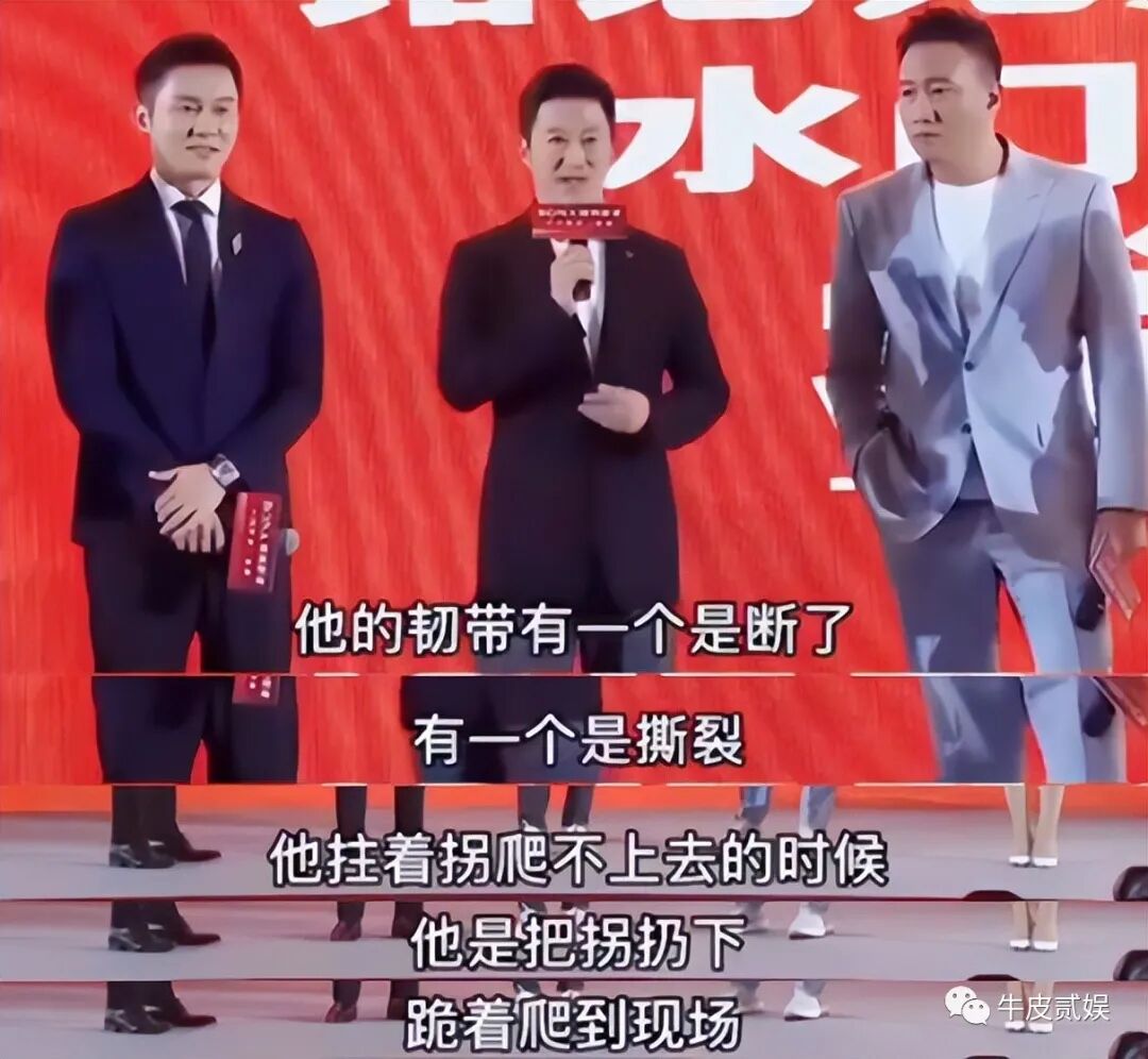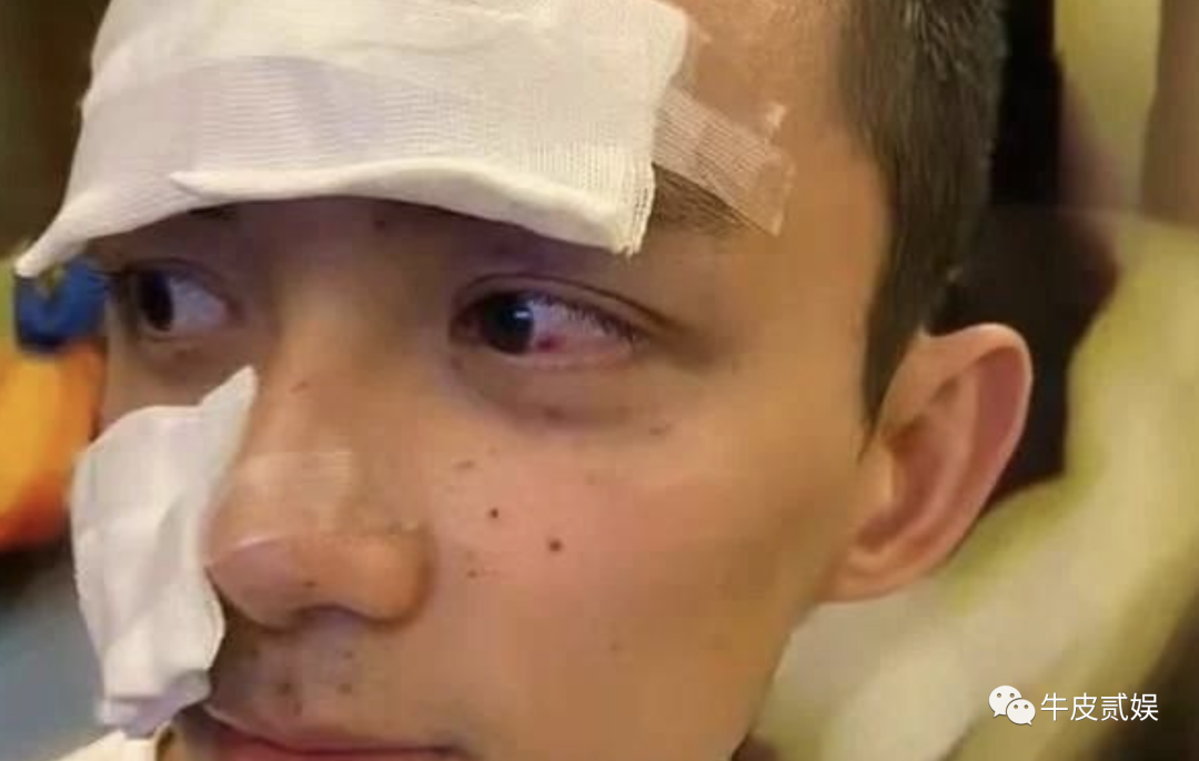 《八佰》里一场坠楼戏时,他两次发生意外,头部着地从二楼坠下。摔倒头后,他闷声坚持把后面的戏份演完,后来才看伤。