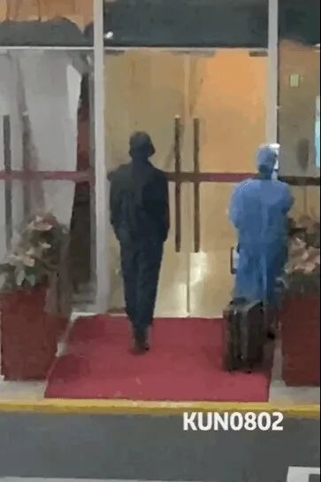 上一次哥们头举得挺高,姿势还挺洒脱,这次连行李箱都是防疫人员帮他带提进去的。