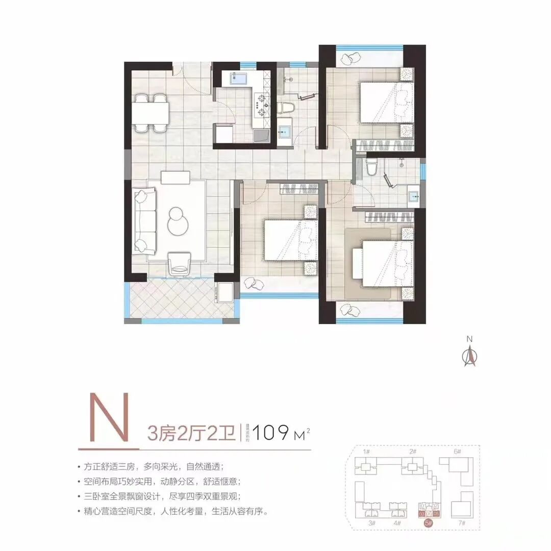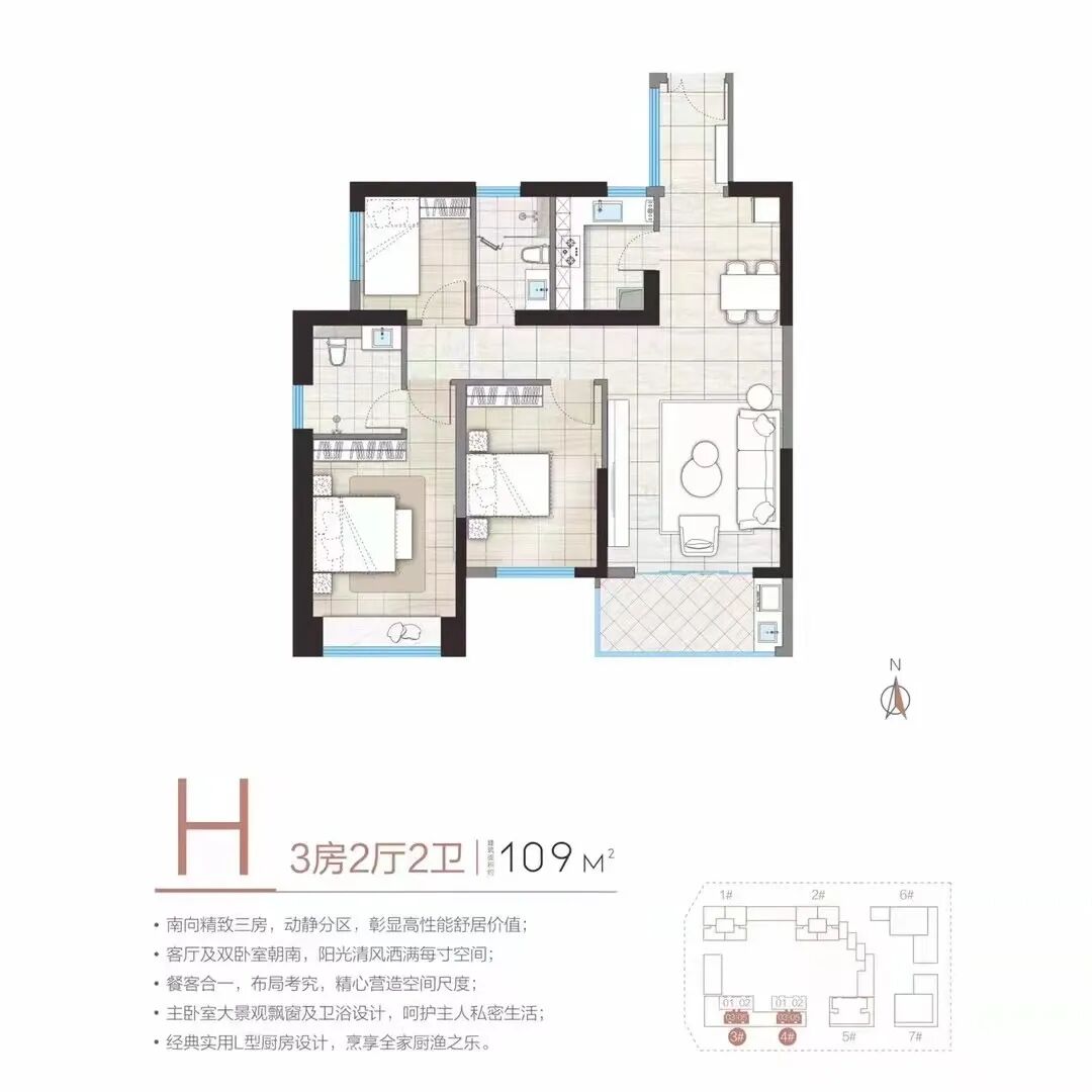 将开售的两栋楼为2梯2户,层高17层,一层6户,南北通透,简装交付,主力户型为128 ㎡三居室。