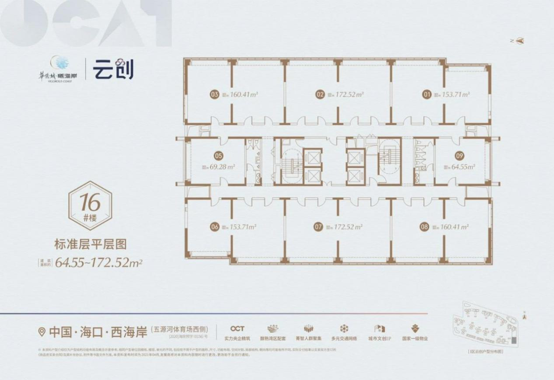 晨晖·西海岸广场二期晨晖·添玺3#、4#、5#在售,类型为酒店式公寓,高层部分房型可看海。