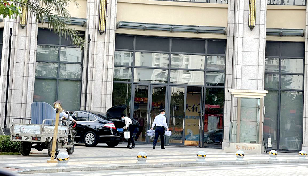 转了一圈回来,发现保安正在搬运几捆疑似合同的材料,不过楼Sir打听到现在看房需要找工作人员走“特殊通道”。