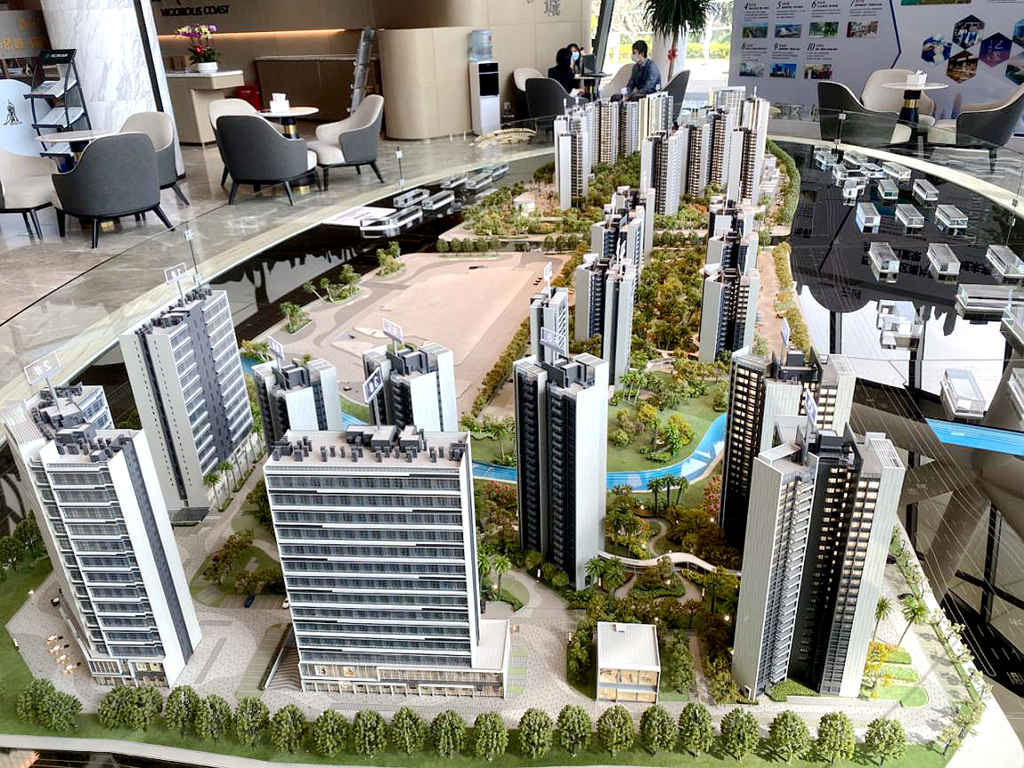 | 华侨城曦海岸沙盘,河流南侧为三期楼栋