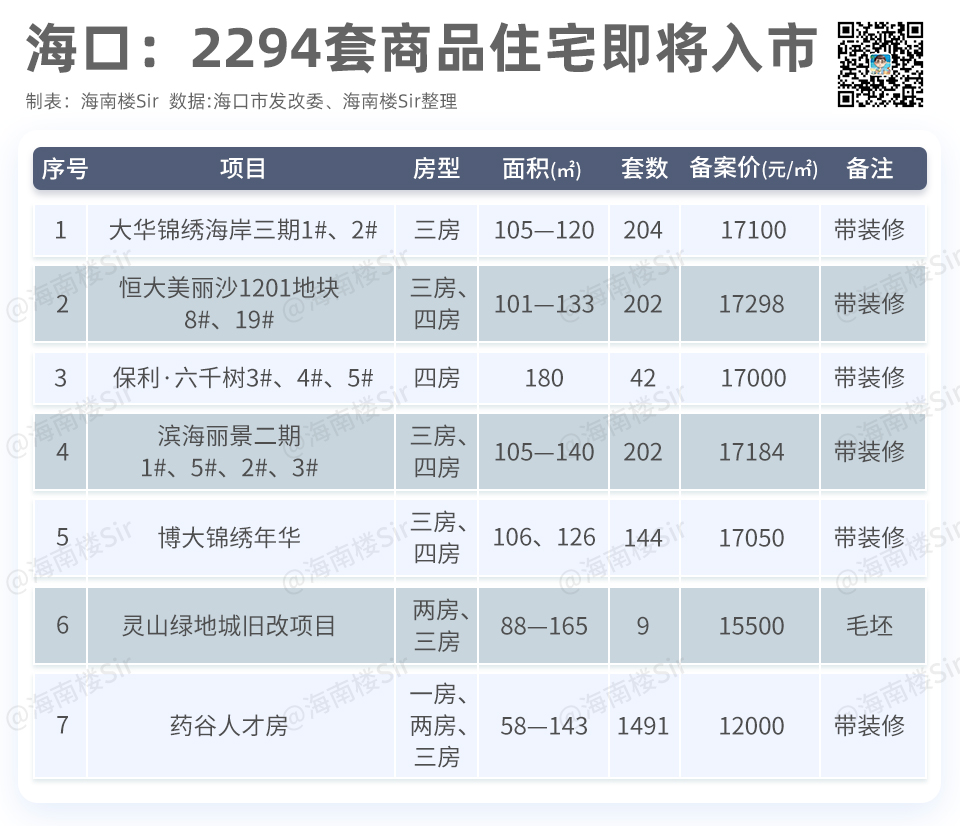 住宅供地不足,海口商品住宅供应还将继续保持低位,楼Sir已预告即将推出新货的项目,可提前关注;安居房正在申请阶段,有消息透露,12月底将进入资格审核期,符合条件的不要错过。