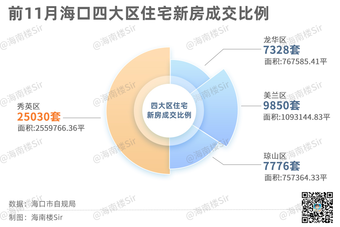 在昨天的预告中楼Sir也写了,数据截至11月底,海口共成交住宅新房49984套,还差16套破五万,成交面积达到517.8万㎡。