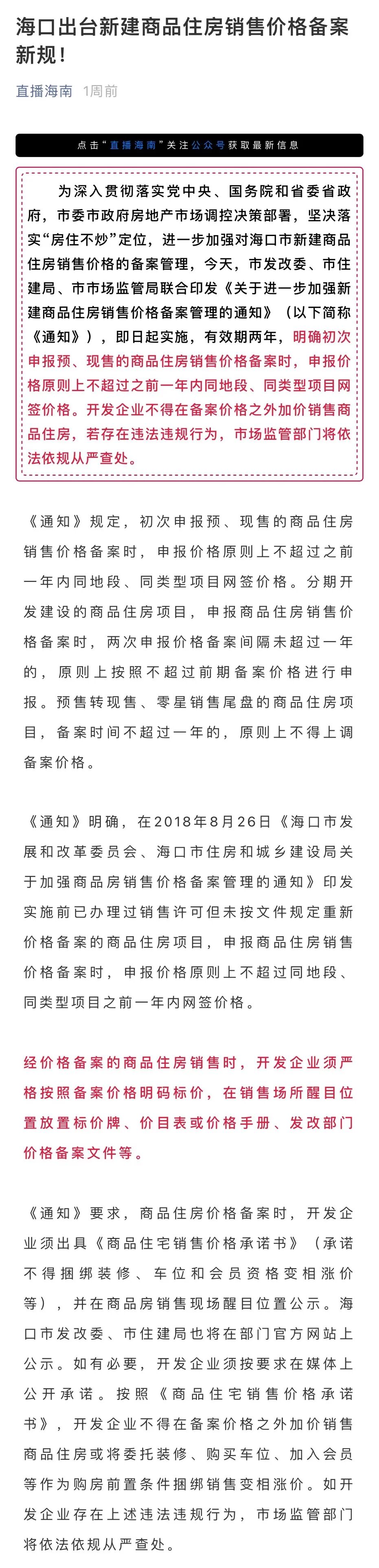 嘿,还真不是!这些乱象或许在接下来的一段时间里,就会得到改善了。因为,上一周海口官方发文了,宣布海口出台新建商品住房销售价格备案新规!