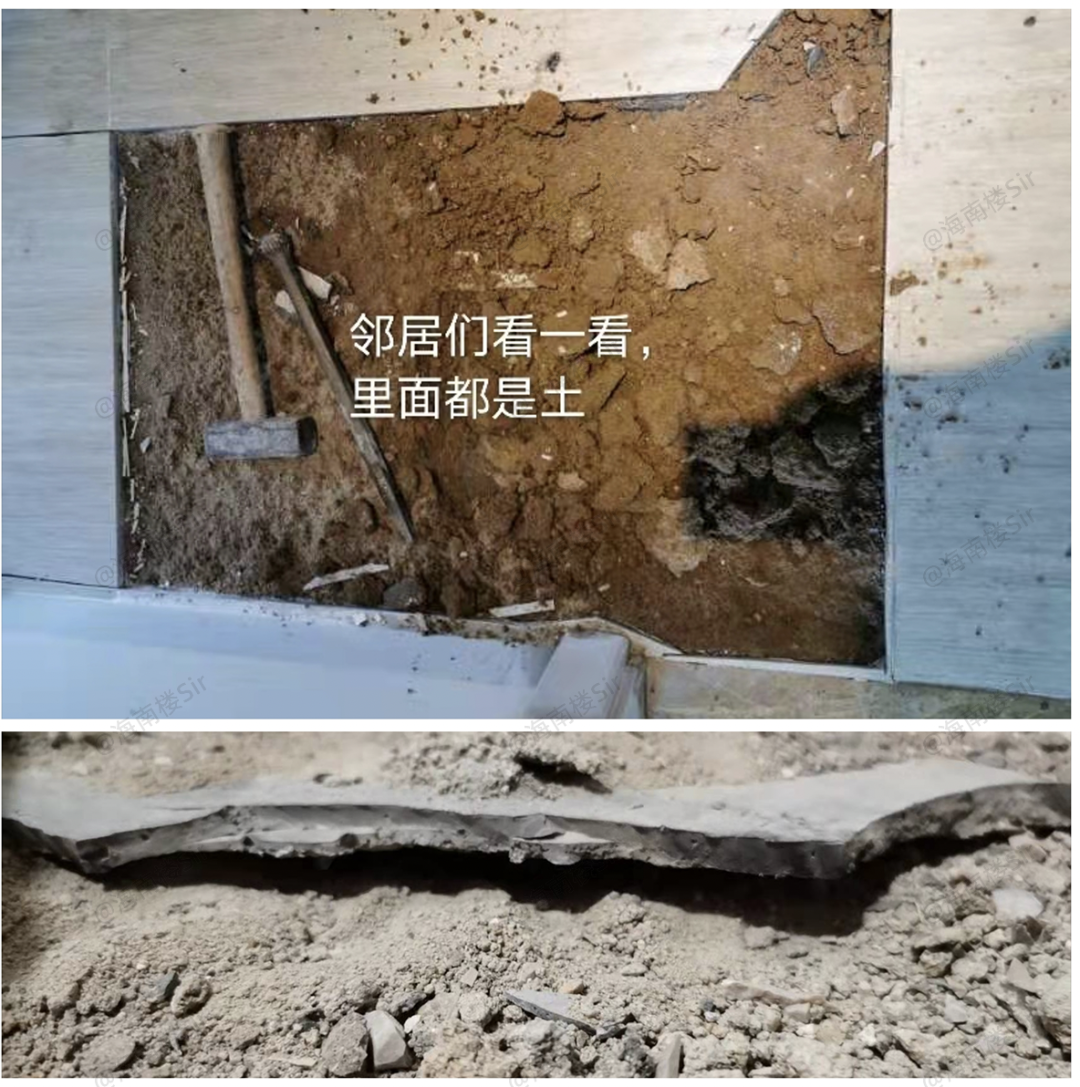 | 业主发现,小区沉降厉害,里面填的是垃圾