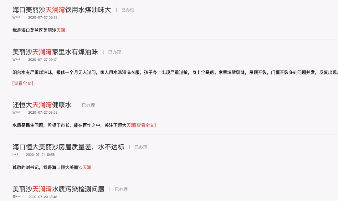 在领导留言板上看到,很多业主从入住后就发现自来水有异味,从2020年投诉至今,还没得到完全解决。