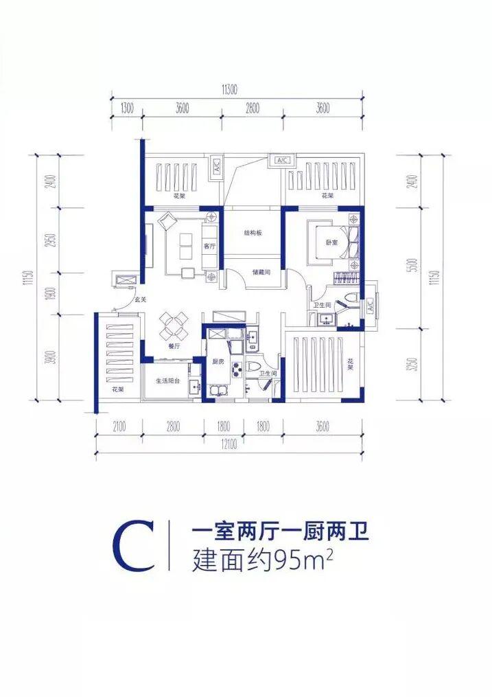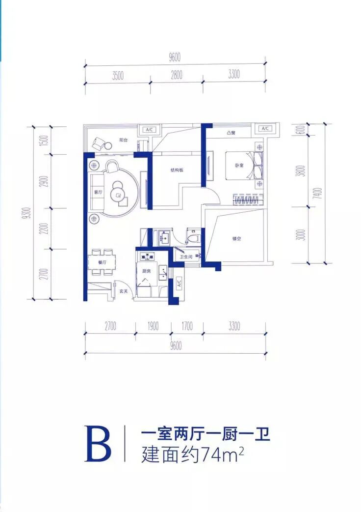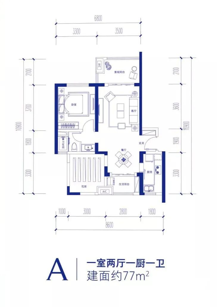 在售户型的面积段分别有74㎡、77㎡、95㎡均为一室两厅、130㎡两室两厅,看户型是不是有点浪费?不过每个户型都可以拓展增加实用面积,另外主推的2#楼没有130㎡的户型。