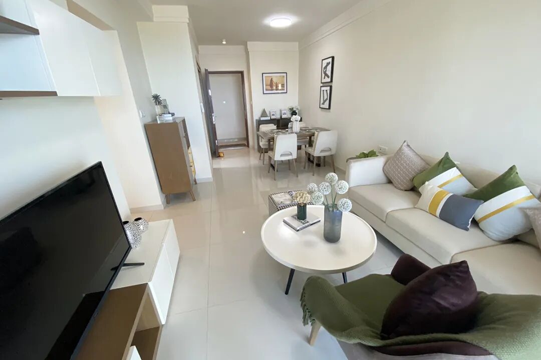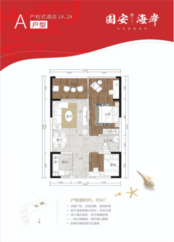 项目在售的有高层瞰海公寓和别墅,其中高层为65㎡的两房两厅,基本售罄,仅剩下几套65㎡的两房两厅的房源,看海的大概120万左右一套,不看海的100多万。