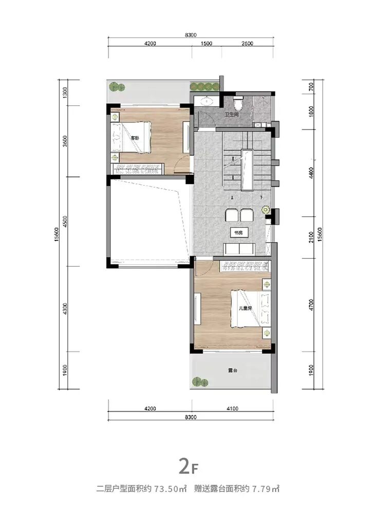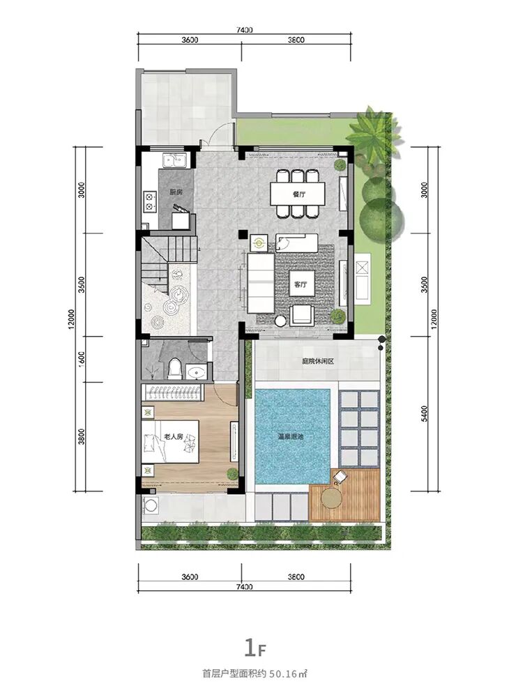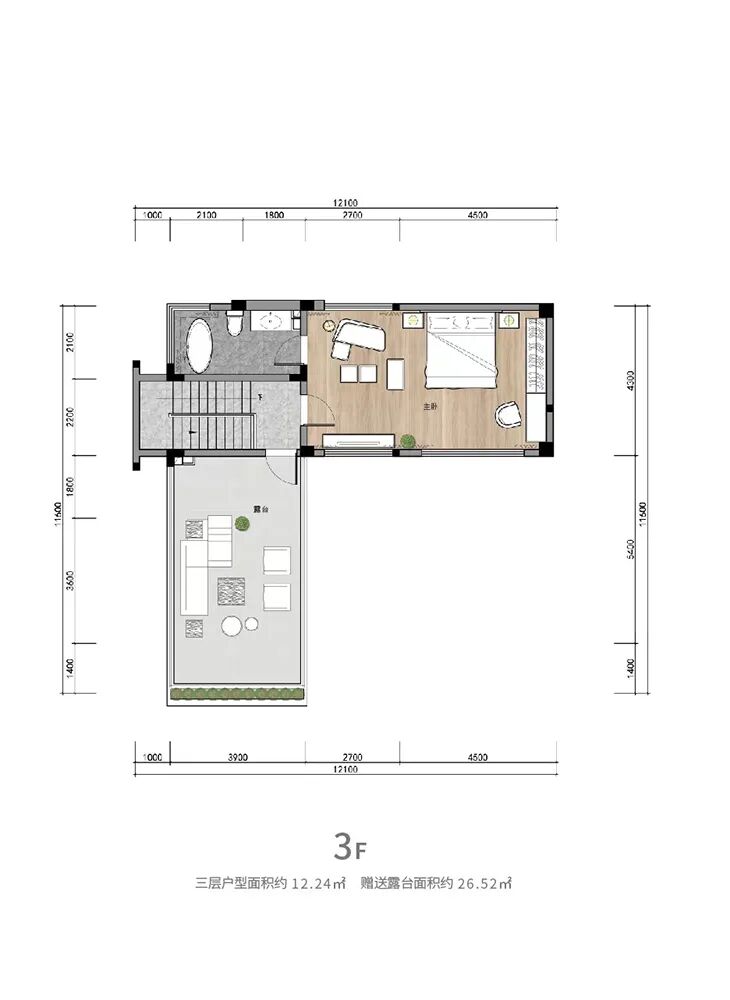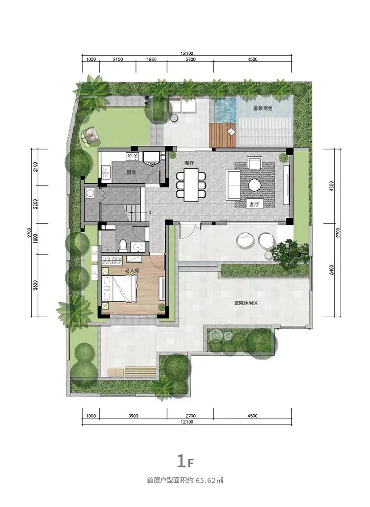 小一点的独栋别墅,入户庭院面积宽敞,客厅6米多的挑高,2楼有儿童房和娱乐区,3楼主卧和露台面积超大,还有私家温泉泡池,相比101㎡的户型,性价比还是稍逊一筹。
