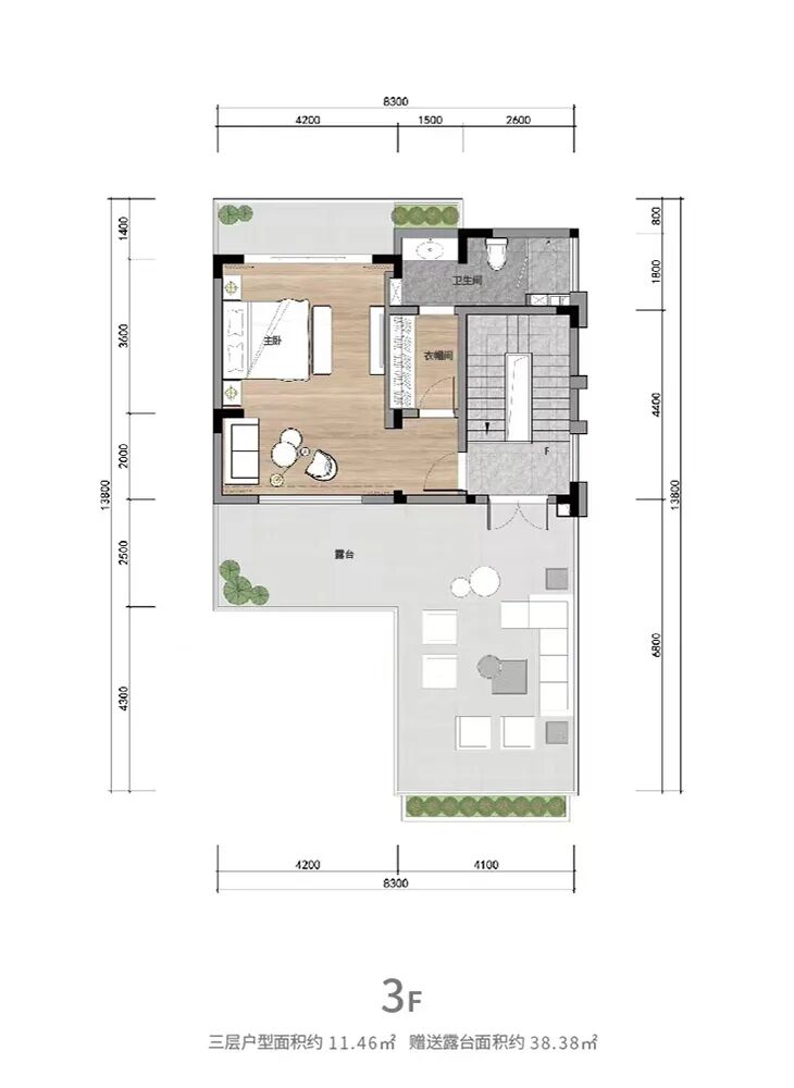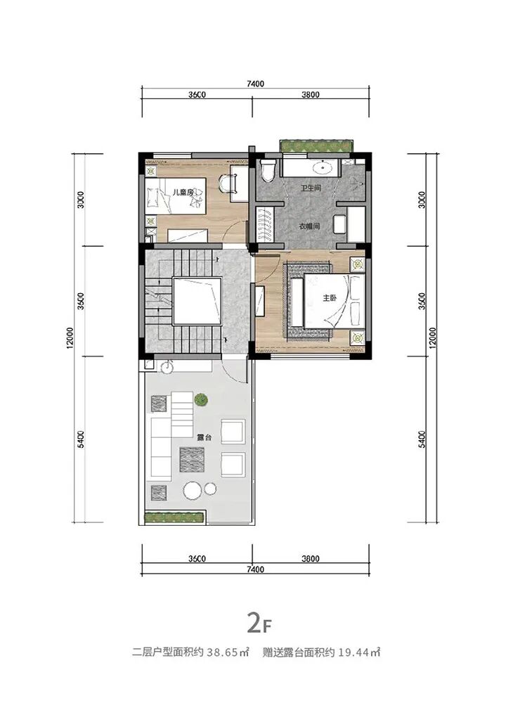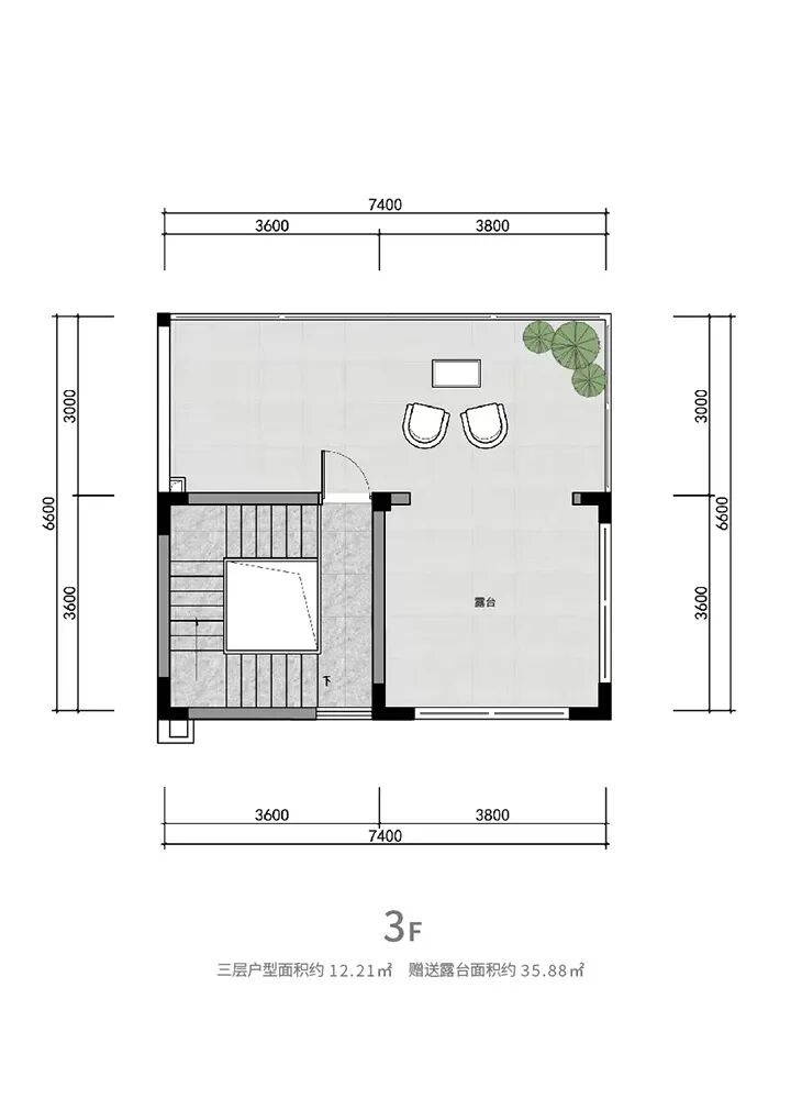 这个户型有一点好处就是,每层都会有一个大的露台供购房者享用,采光也足。