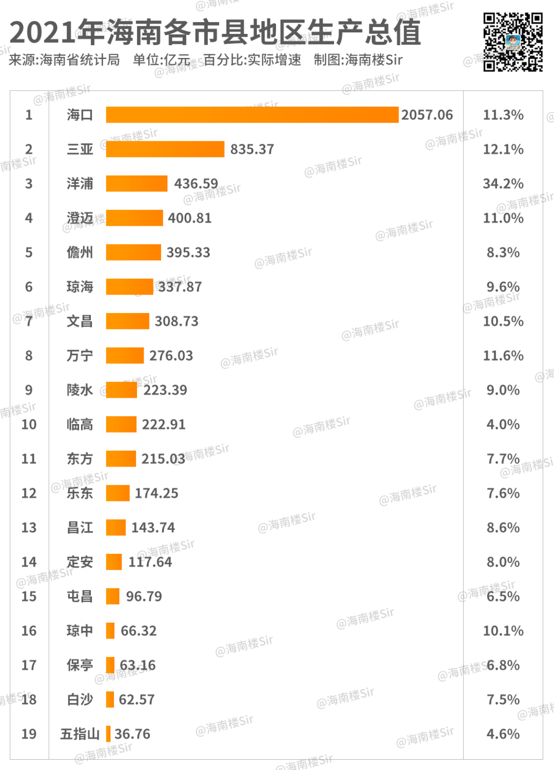 最近,2021年海南省各市县GDP成绩单出炉了,楼Sir在整理时发现,澄迈竟然在众多“竞争对手”中排名第四,看来是位“闷声干大事”的主。