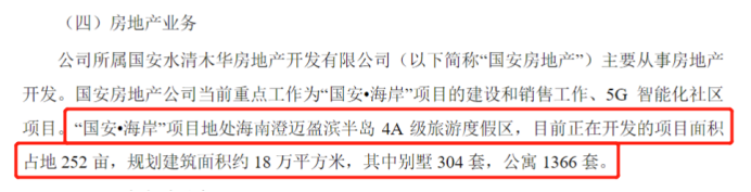 2018年6月,收购了澄迈安盈置业有限责任公司100%股权,获取80亩一线海景土地开发使用权,收购价格为3.8亿。
