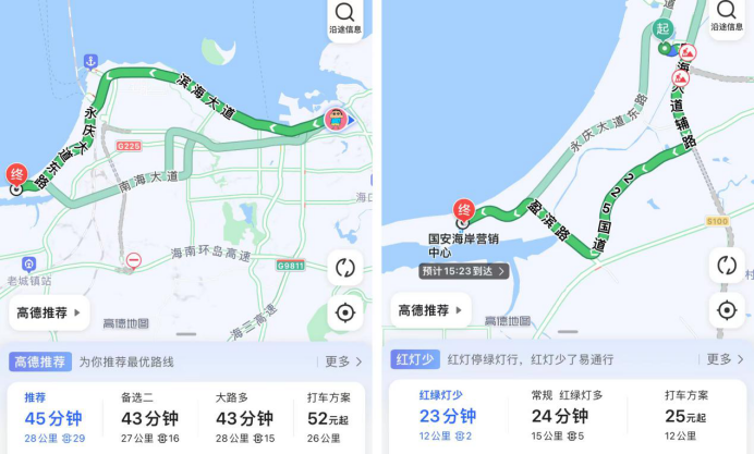 从海口国贸出发前往项目,不堵车大概需要45分钟,走的是滨海大道-永庆大道沿线,看着挺远,但西海岸过去也就是十多公里。