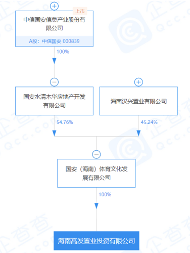 国安·海岸开发商是海南高发置业投资有限公司,投资商为国安(海南)体育文化发展有限公司,均为中信国安旗下子公司。