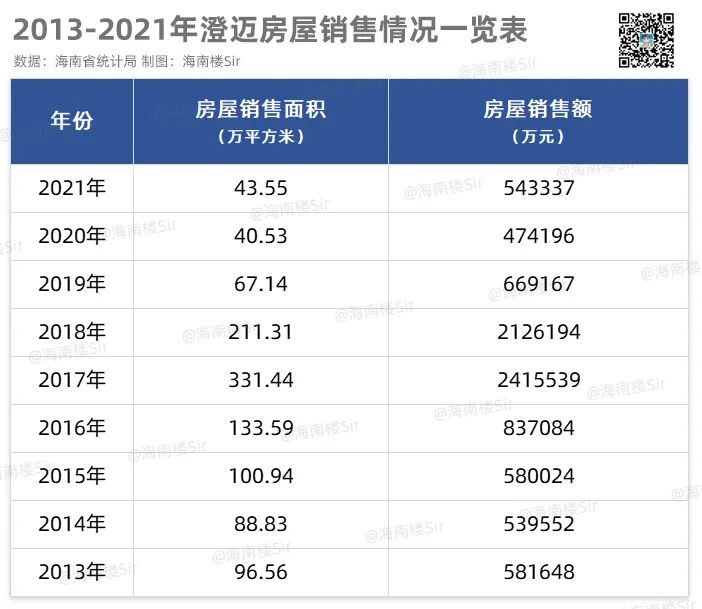 随着2016年北方雾霾影响,2017年澄迈楼市迎来爆发,房屋销售面积和销售额都达到巅峰。