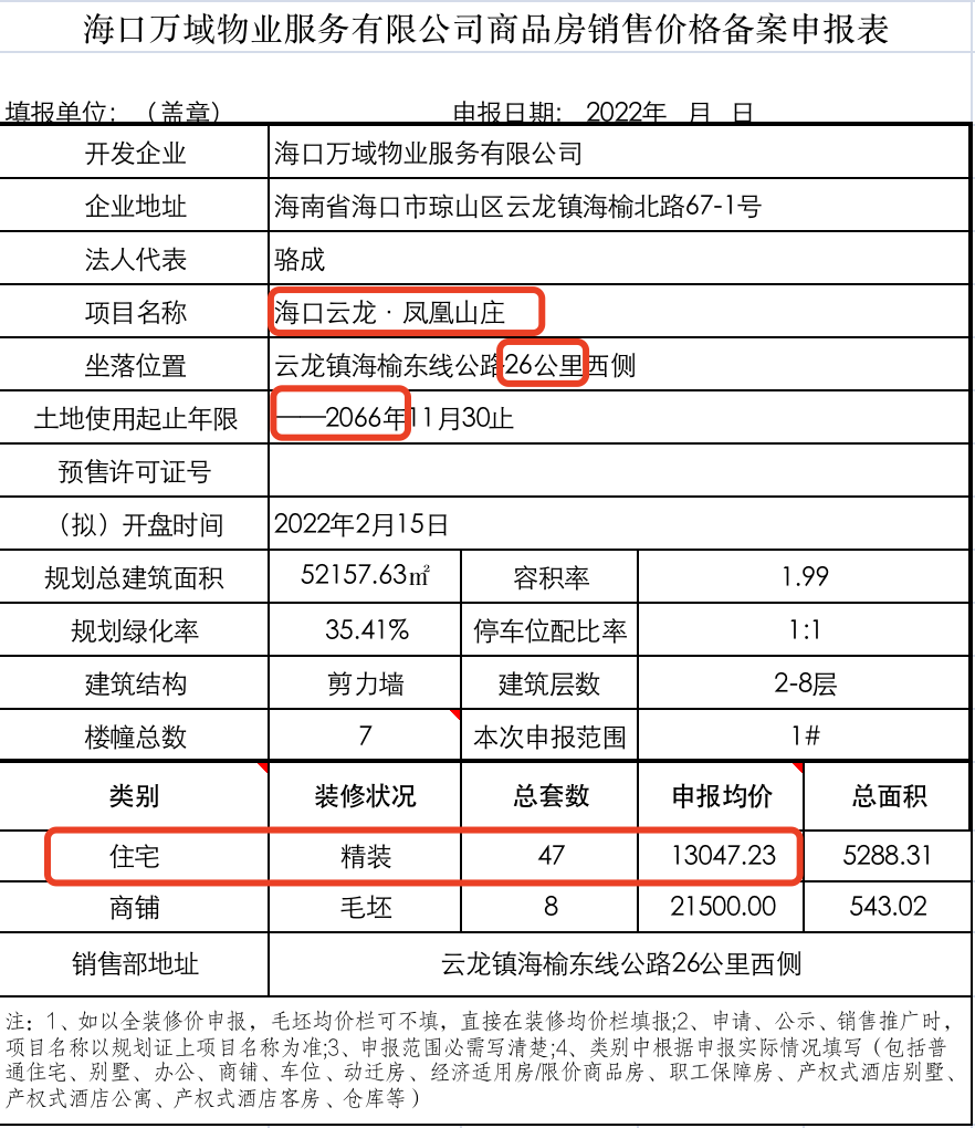 云龙·凤凰山庄项目备案价才13047.23元/㎡,带装修,但粗略一看,土地年限仅剩44年,位置也是够偏远。