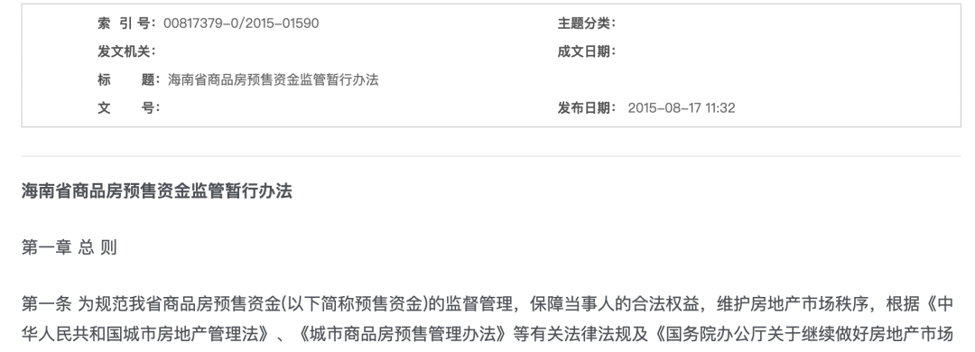 资金监管账户其实一直存在,海南省于2015年就出台了《海南省商品房预售资金监管暂行办法》。
