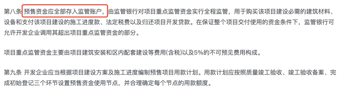跟开头提到的恒大不同,正常的项目,资金监管账户是由开发企业自己开设,与银行合作,卖房资金进入账户后,受银行监督、管理,有条件去支取。