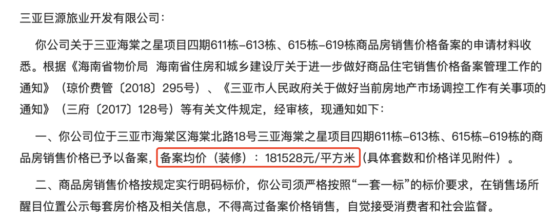 18万的备案价,意味着在三亚的网签备案系统里,该项目最高可达到的售价。