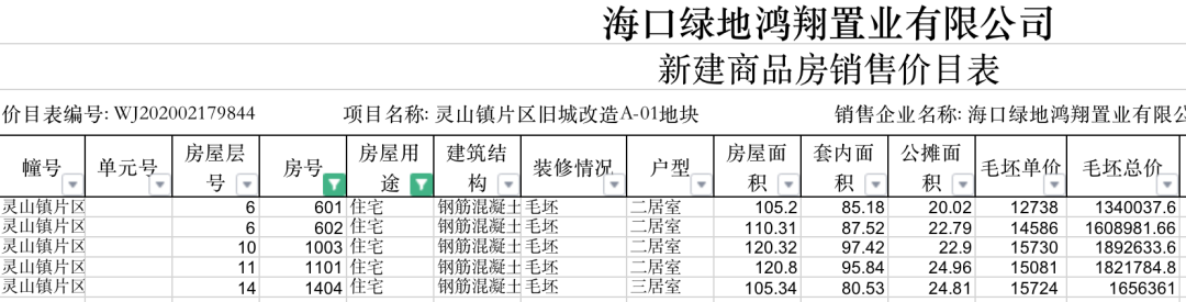 这几套未售房源,于2020年备案过,楼Sir查询到上次备案文件,发现价格均做了上调。