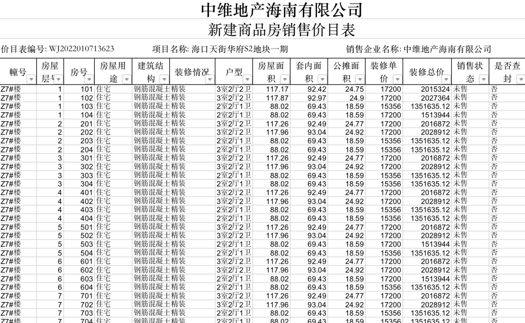 另一个项目海南新天地新备案一栋21#楼,总29层,共116套房,备案均价为16500元/平米,带精装。