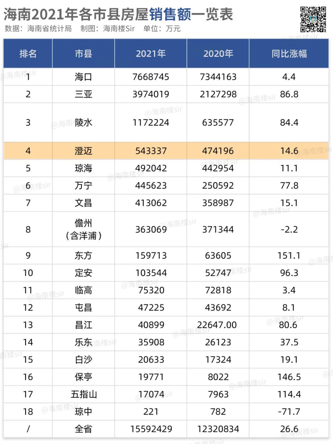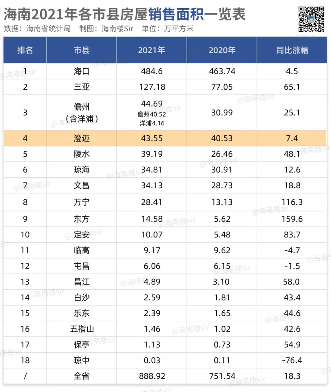 | 海南2021年各市县房屋销售面积一览表