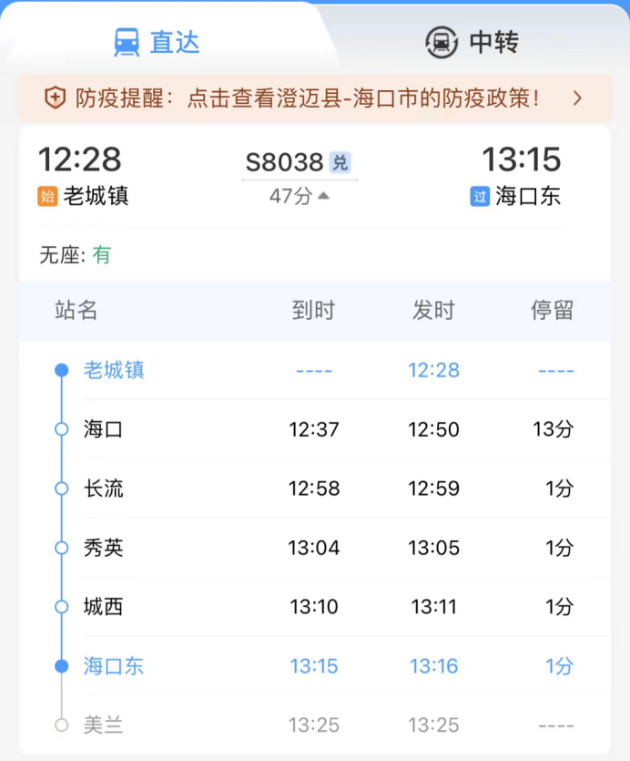 至于想要去海口的话,目前城际列车也延长到了老城镇站,到海口东不到50分钟,中途经停海口、长流、秀英、城西,终点为美兰机场,票价10元。