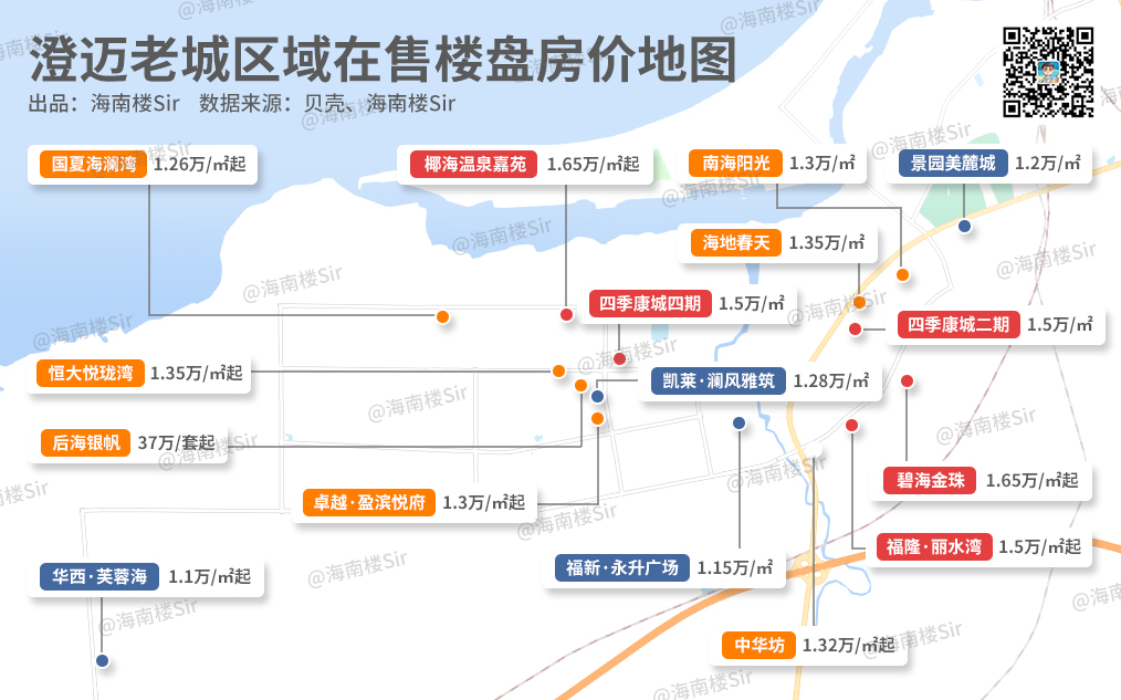 | 澄迈老城在售楼盘房价地图(不完全统计)