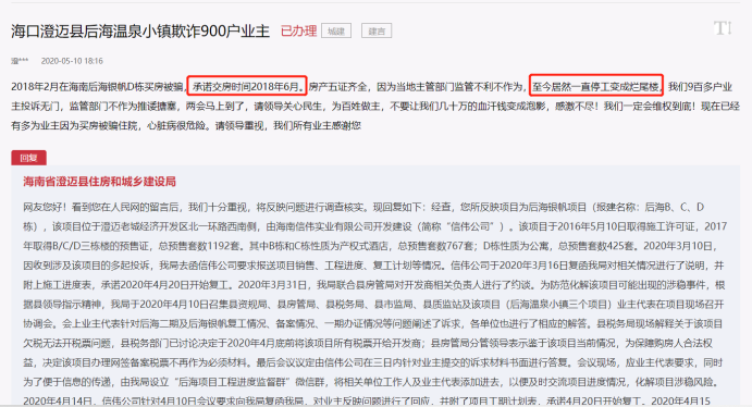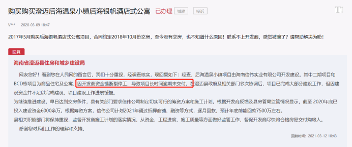 楼哥顺手查了一下,2020年后海银帆还被爆出资金链断裂停工,导致逾期交房的情况发生,而且还有烂尾风险。
