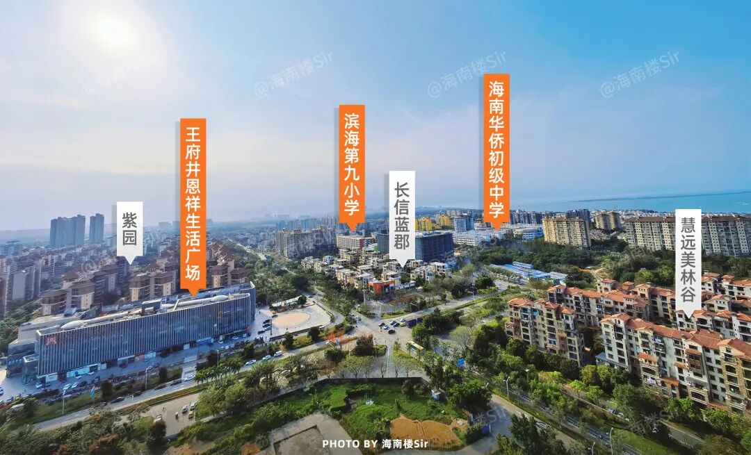 从海秀快速路海盛路出口下来往滨海大道方向右拐,在永万路以西、长彤路以东,有一块居住区,这里集中分布着紫园、泰达天海国际、慧远美林谷等二十几个小区。