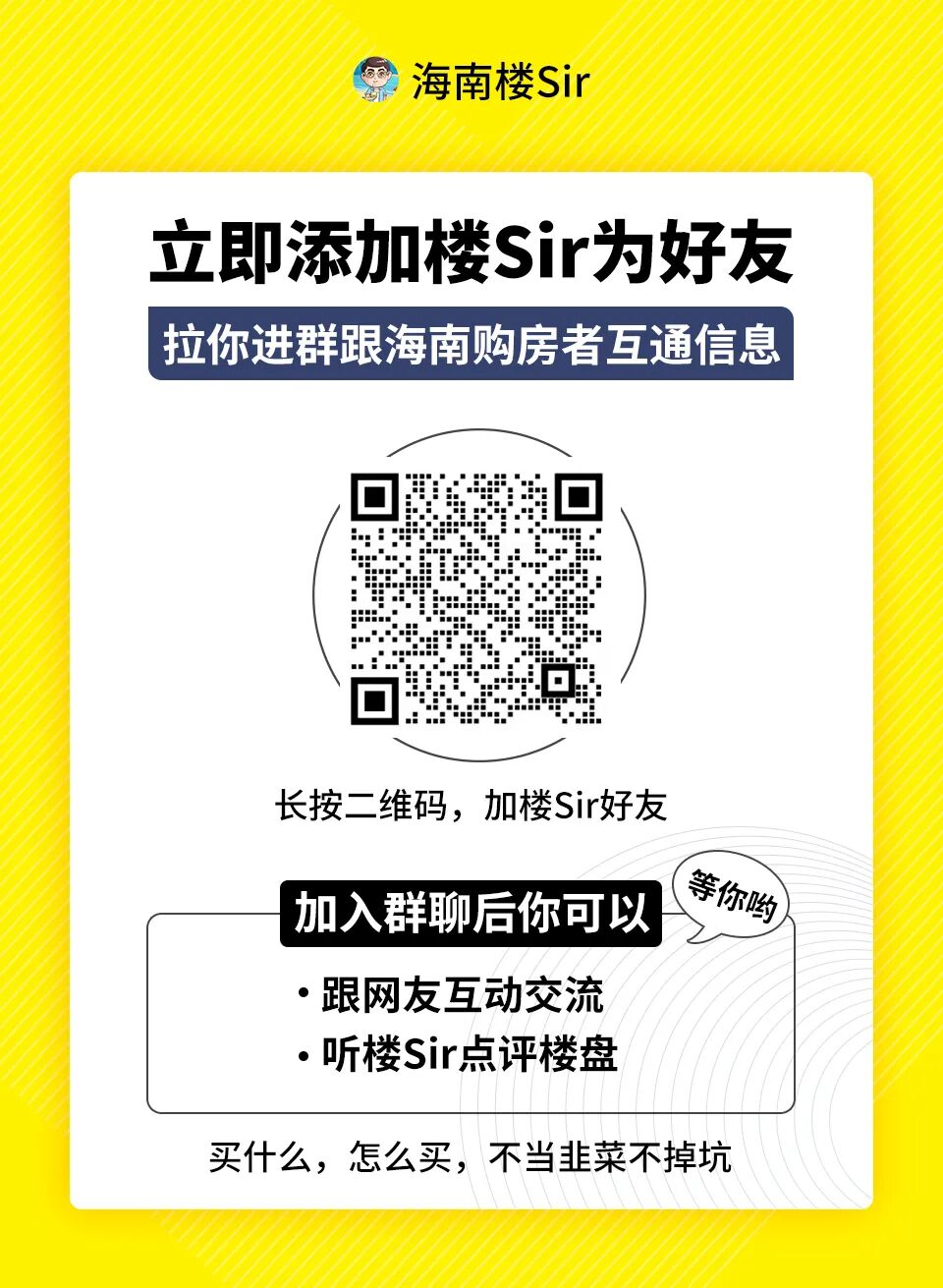 大家觉得这个板块香吗?国兴、海口湾二手or这里的新房,二选一的话,你会怎么选?欢迎随时勾搭楼Sir,文章前后图片有二维码,咱进群聊。