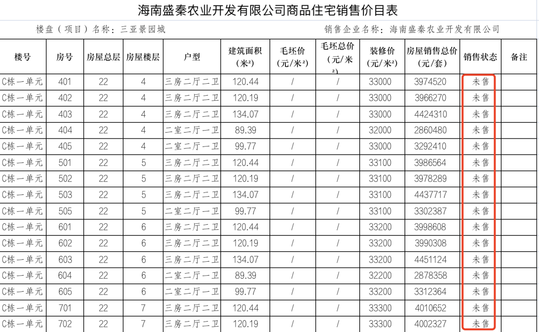 此外,值得关注的是,碧桂园在三亚迎宾路上的三亚国际传媒中心写字楼,本次备案399套房,均价4.54万/㎡。