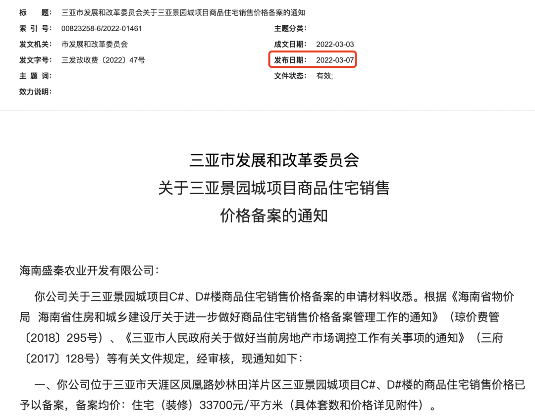 2022年新出现的备案通知,均价为3.37万/㎡。