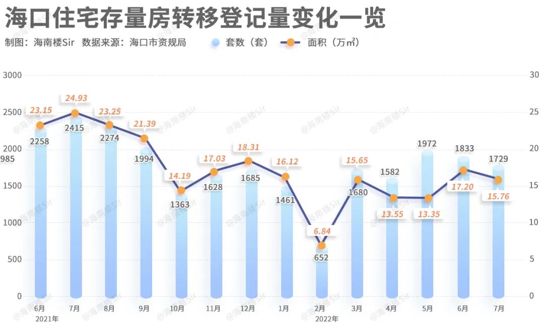 7月海口二手房转移登记了1729套,相较于上月降了一些,但是这个数据放在去年也还是不错的。