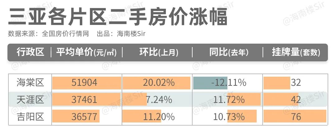 值得关注的反倒是天涯区和吉阳区,房价分别涨至3.75万/平、3.66万/平,这价格也算是创了今年的新高。
