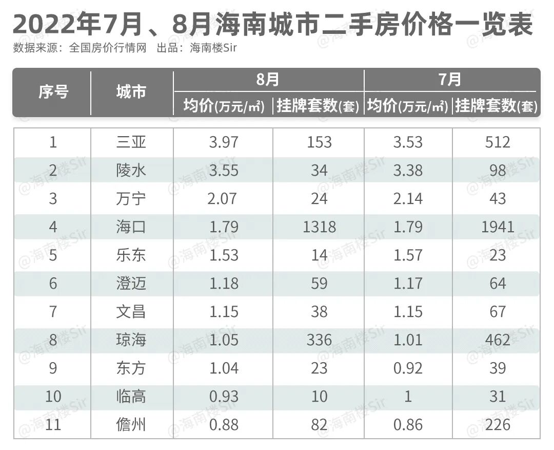 那么,8月海南各个市县的房价怎么样了?楼Sir今天就跟大家说道说道。