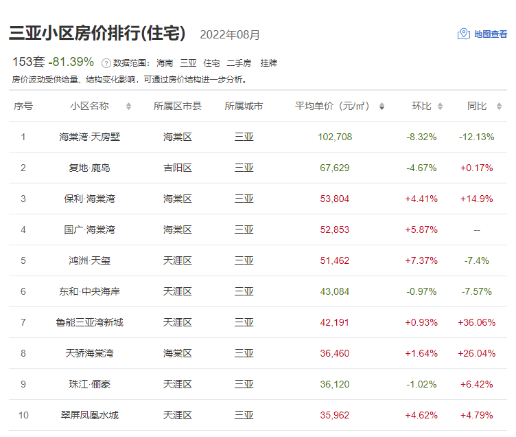 楼Sir顺手扒了一下8月三亚二手小区的房价排行,放出来给大家了解一下: