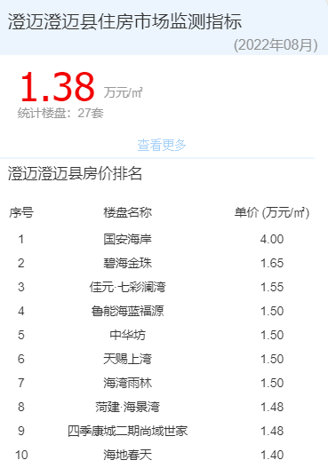 | 8月澄迈均价情况 图源房价行情网
