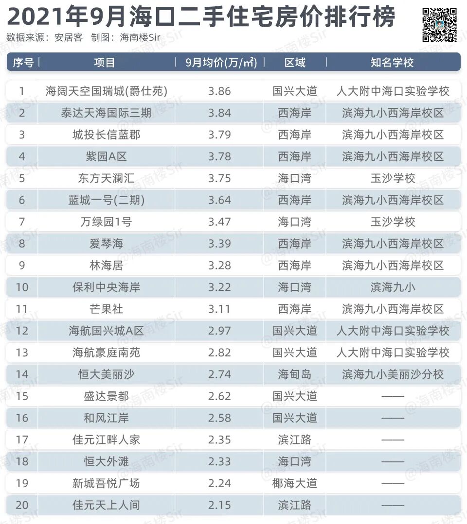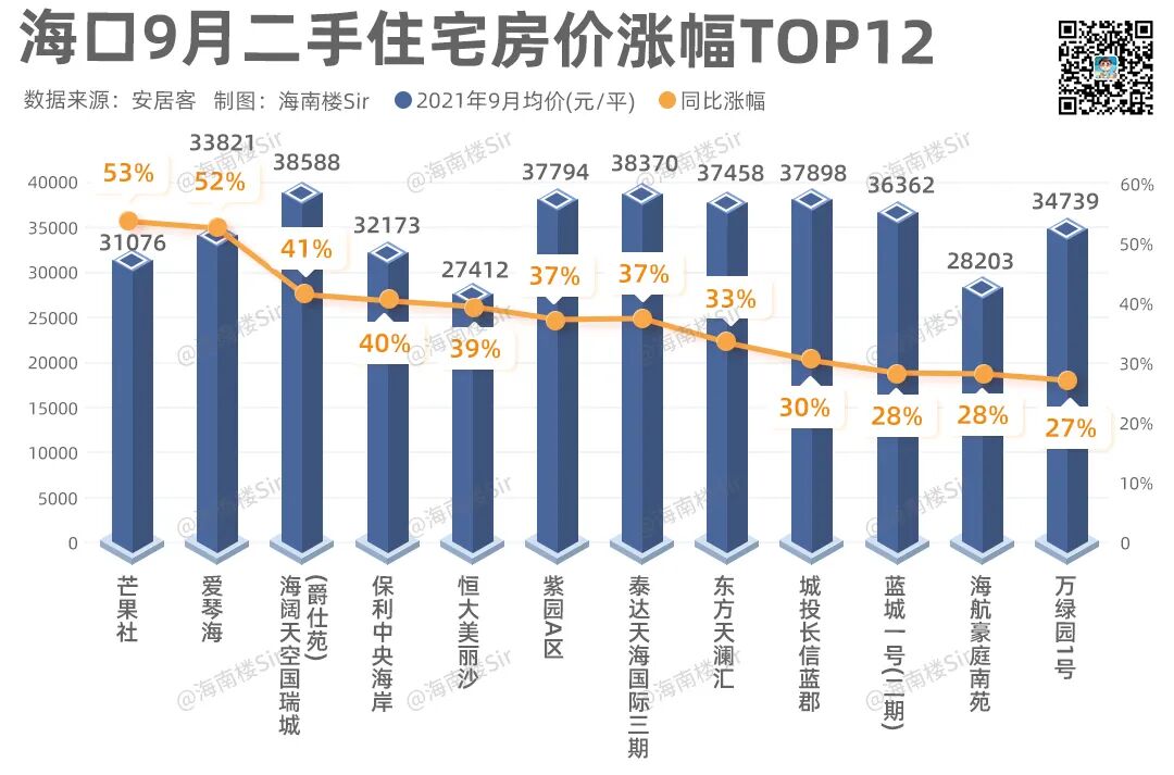于是,楼Sir找出了目前海口二手房10个最贵,和涨幅最大的热门小区,直接上图: