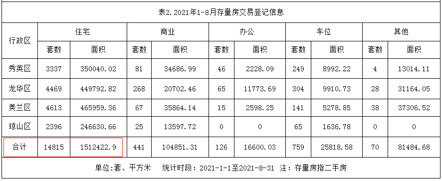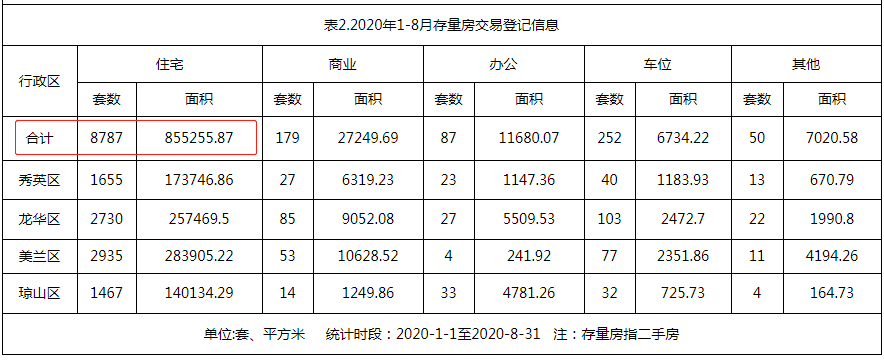 然后,楼Sir又去查了一下交易数据,发现今年1-8月,海口存量房(二手房)交易登记套数为14815套,面积151.24万㎡;去年1-8月,交易套数为8787套,面积85.53万㎡。