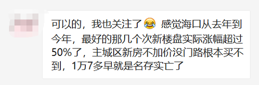 之前我们写了《气死了!海口一年涨100万的小区,就这?》就国兴城价格上涨快、小区品质堪忧提出讨论,结果一石激起千层浪,二手房问题逐渐浮出水面,网友们纷纷加入讨论: