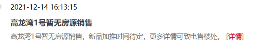 宏图·高龙湾1号于12年底开盘,销售动态中,查到去年开始就已经停售。