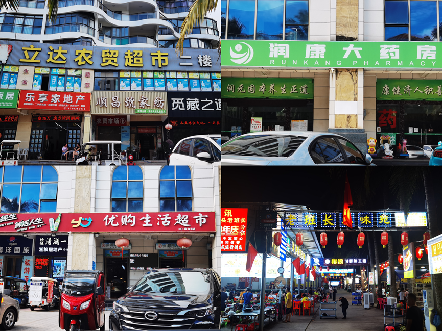 清澜片区的小配套还是挺多的,还有很热闹的海边夜市,但是夜市规模看上去应该不如往年,不少门店是关着的。