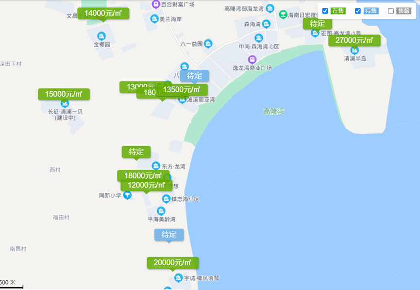 这里冬天人气会很旺。本地人更是夸张地说:99%都是外地人。而外地人购买的集中区域主要就是围绕着高隆湾,沿着海岸线从北到南依次开发。