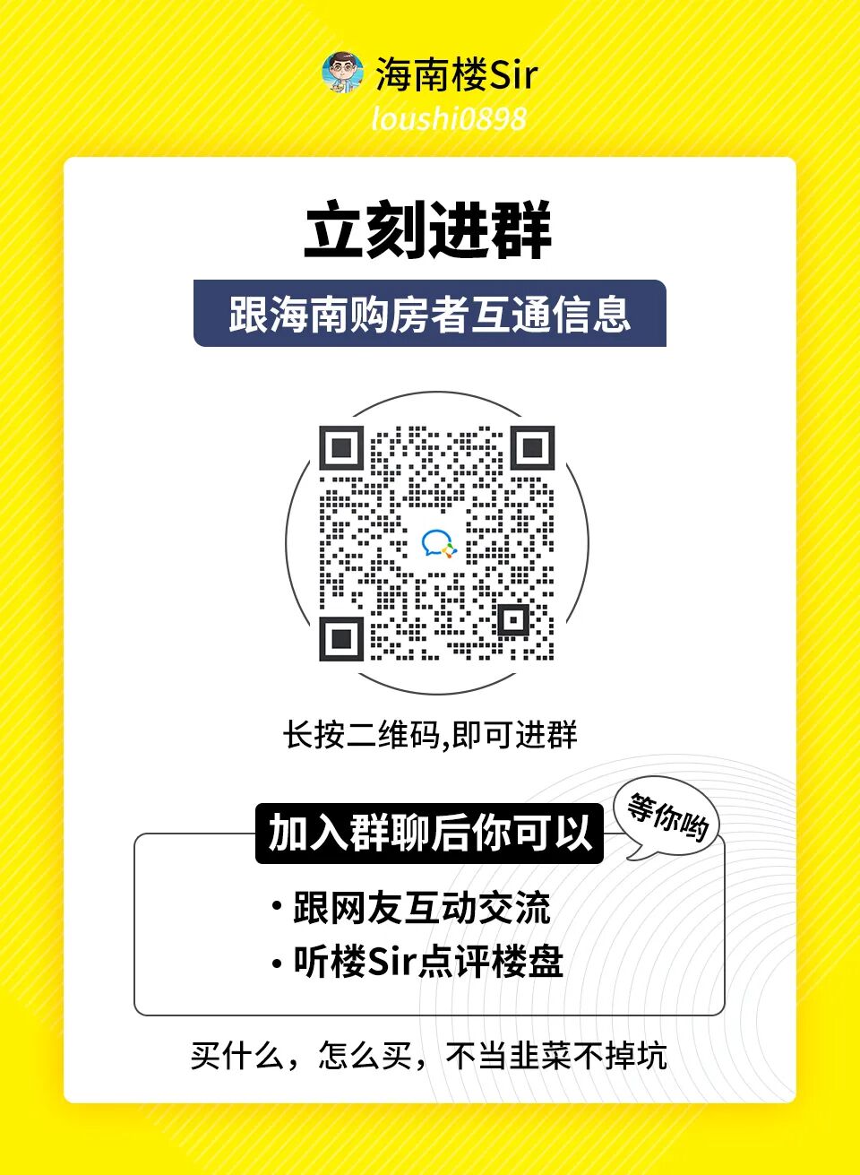小伙伴们,海南买房,养成先了解市场的好习惯,现在关注楼Sir,这里有楼市政策、房价数据、购房指南、踩盘报告等。欢迎加群一起讨论,直接加楼Sir(微信号:Lousir2021)拉你进群,里面有不少买房老司机。